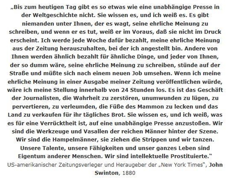 Die Illusion eines freien Journalismus. Manche Dinge ändern sich nie!